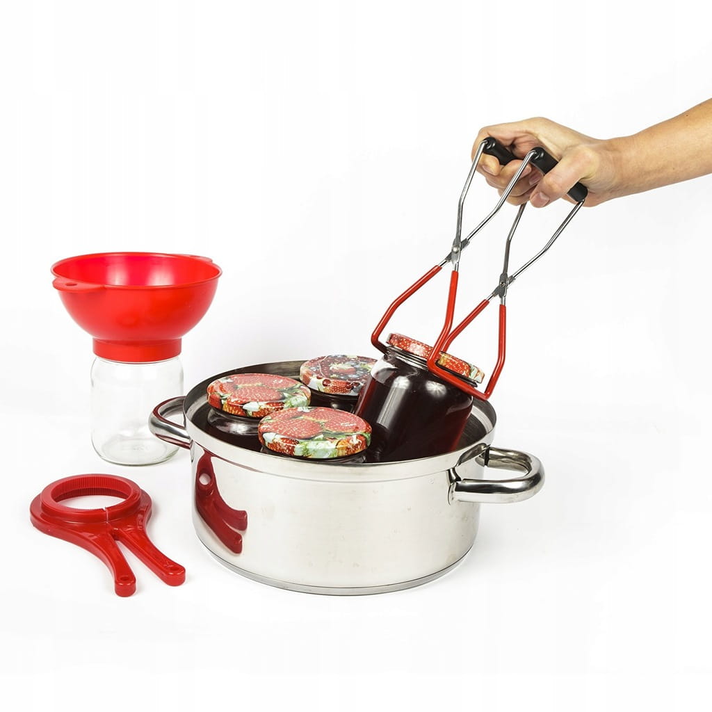 Praktyczne narzędzie niezbędne w każdej kuchni, idealne do bezpiecznego wyjmowania gorących słoików z wody podczas przygotowywania domowych przetworów.