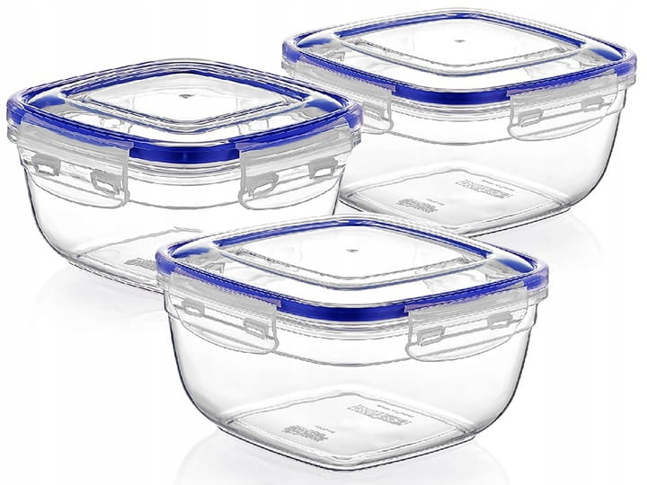 KOMPLET 3 POJEMNIKÓW na żywność – kwadratowe, szczelne, z klipsami