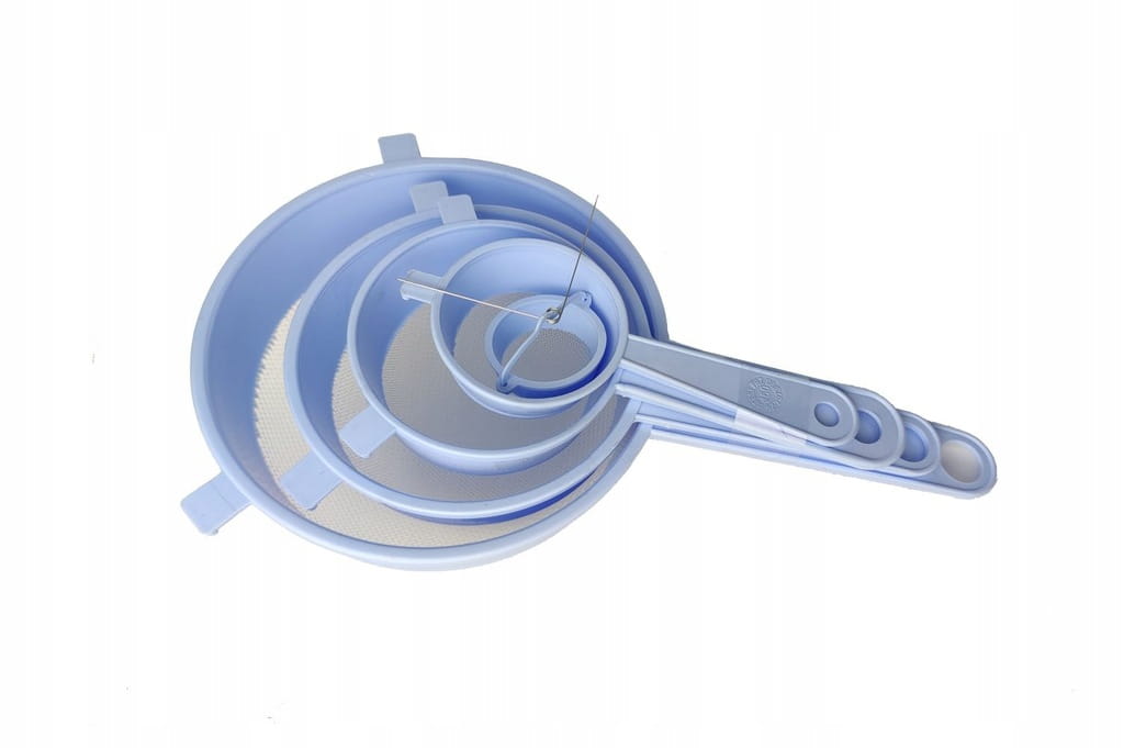 Zestaw 5 sztuk sitek o średnicach: 40 mm, 60 mm, 90 mm, 120 mm i 160 mm, wykonanych z trwałego tworzywa sztucznego PP. Kolory wysyłane losowo. Idealne do różnych zastosowań w kuchni i w przetwórstwie domowym.