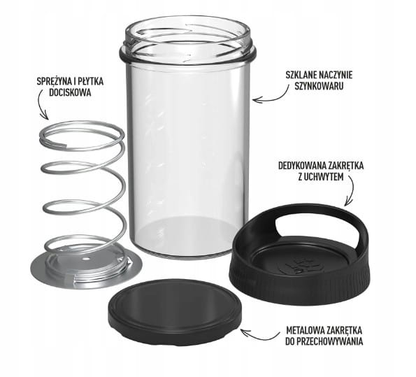 Wysokiej jakości zakrętka BPA free – odporna na wysoką temperaturę, dedykowana do parzenia w szklanym naczyniu.